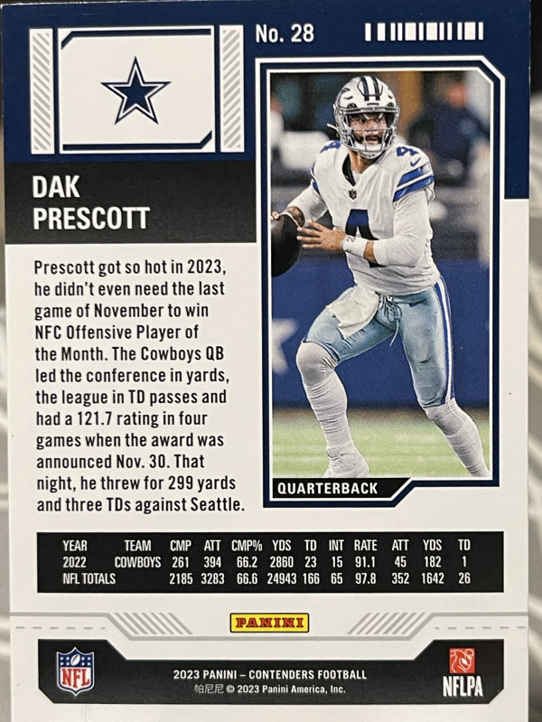 2023 Panini Contenders - Season Ticket Dak Prescott #28