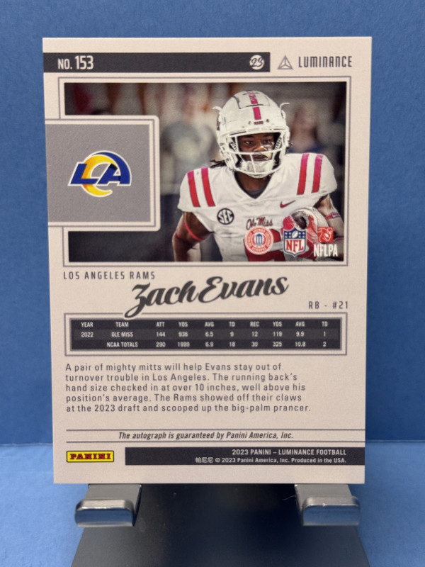 2023 Panini Luminance #153 Zach Evans Gold Hexagon Autograph #/100