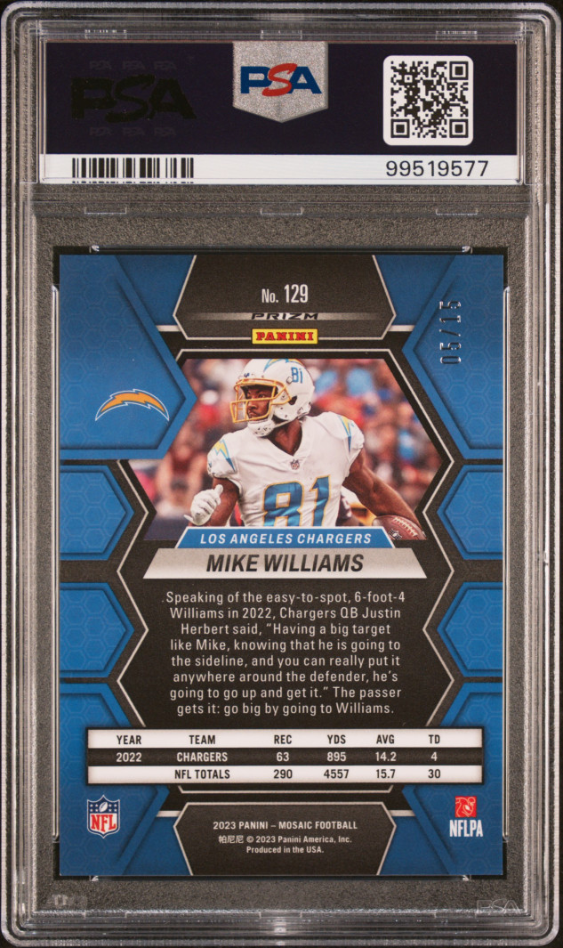 This tesselation card of Mike Williams to 15 is awesome. It’s a POP 1 PSA 9. HMU if you want to make a deal. No comps out there so hard to price. The to 15 should give it some value.