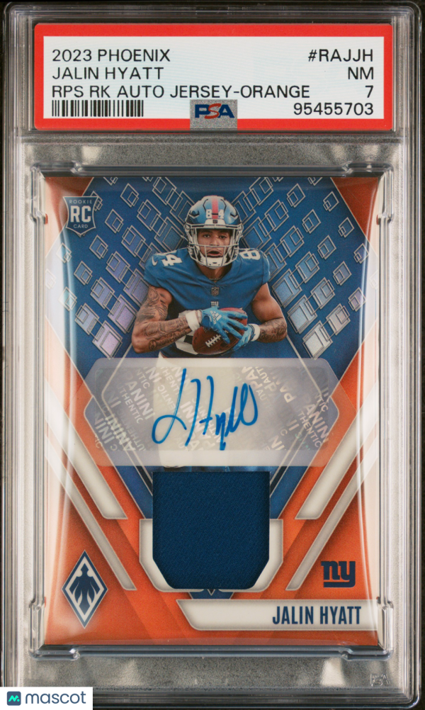You are purchasing a 2023 Panini Phoenix RPS Rookie Auto Jersey Jalin Hyatt #RAJJH RPS RK Auto Jersey Orange Low Pop Short Print 29/80 Rookie PSA 7 Panini Authentic. You will receive the exact item in the photographs.