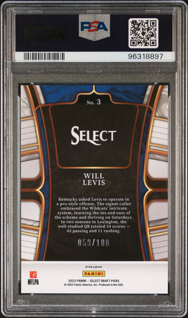 2023 Panini Select Draft Picks Will Levis Black & Gold Squares Prizm