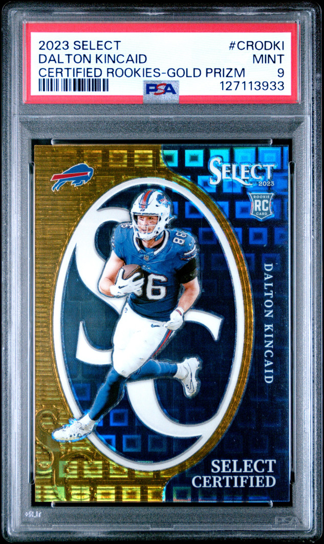 2023 Panini Select Select Certified Rookies Dalton Kincaid Certified Rookies-Gold Prizm /10 PSA 9
