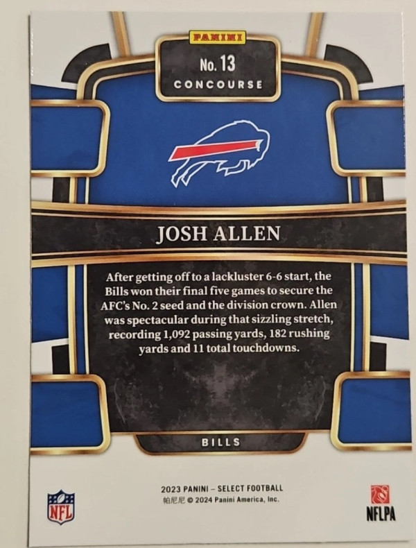 2023 Select Football #13 Josh Allen Concourse Level Buffalo Bills