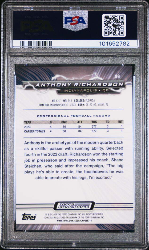 You are purchasing a 2023 Topps Composite Anthony Richardson #99 Yellow Surge RC /200 PSA 10. Thank you for looking.