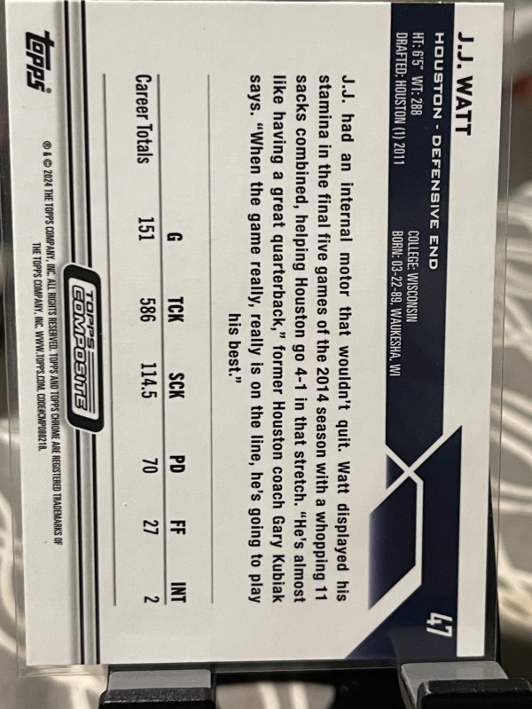 2023 Topps Composite Topps Chrome J.J. Watt #47