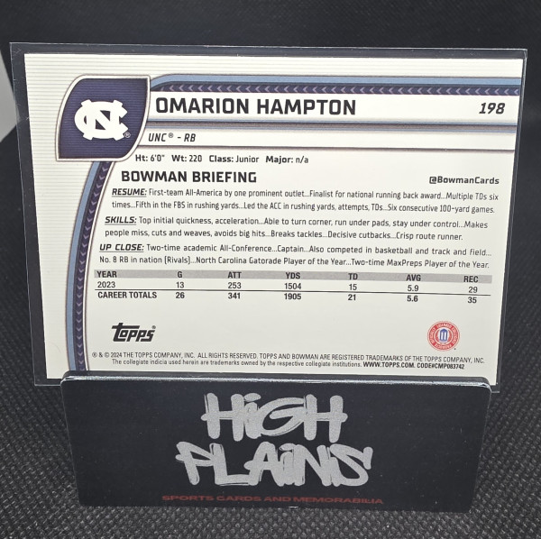 2024 Bowman Chrome U Omarion Hampton Blue Mini Diamond 175