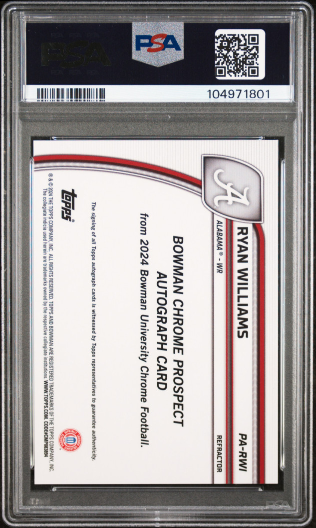 2024 Bowman University Chrome Bowman Chrome Prospect Autographs Ryan Williams Chrome Prospect Auto-Ref