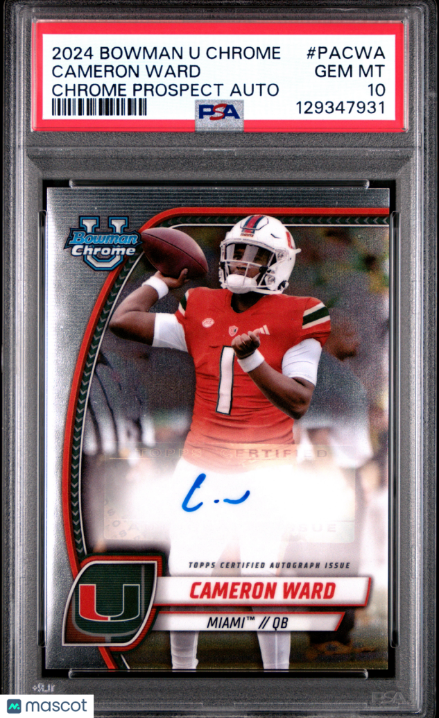 You are purchasing a 2024 Bowman University Chrome Bowman Chrome Prospect Autographs Cameron Ward Auto PSA 10. You will receive the exact item in the photographs. Thank you for looking.