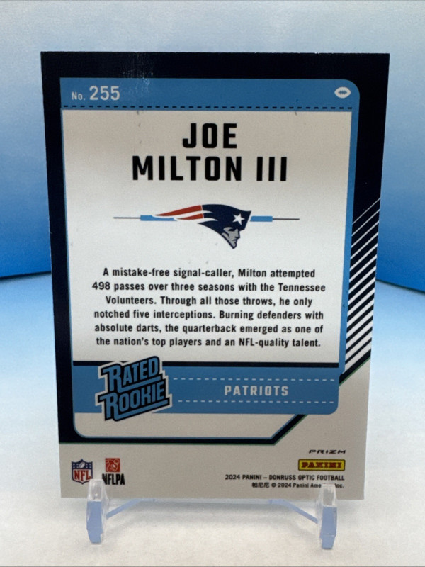 You are purchasing a 2024 Donruss Optic Joe Milton #255 Optic Rookie. You will receive the exact item in the photographs. Thank you for looking.