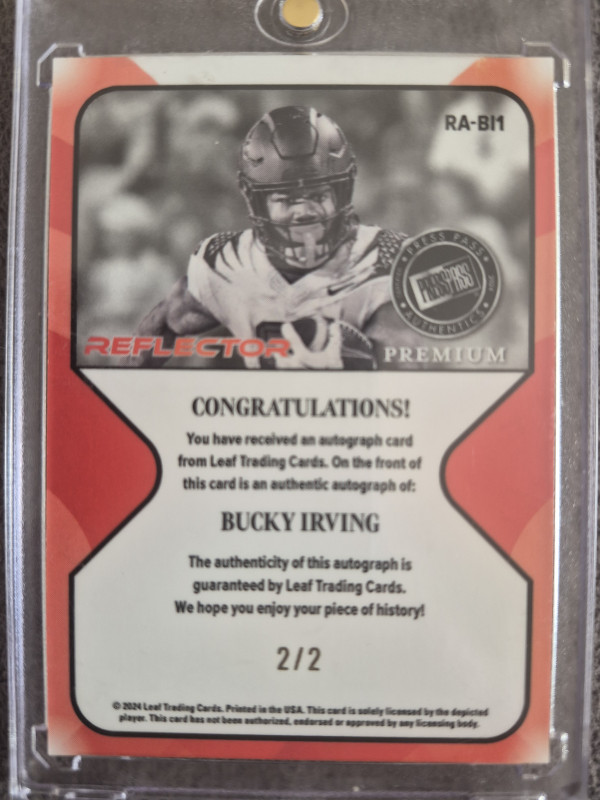2024 Leaf Reflector Bucky Irving Rookie Auto 2/2!!