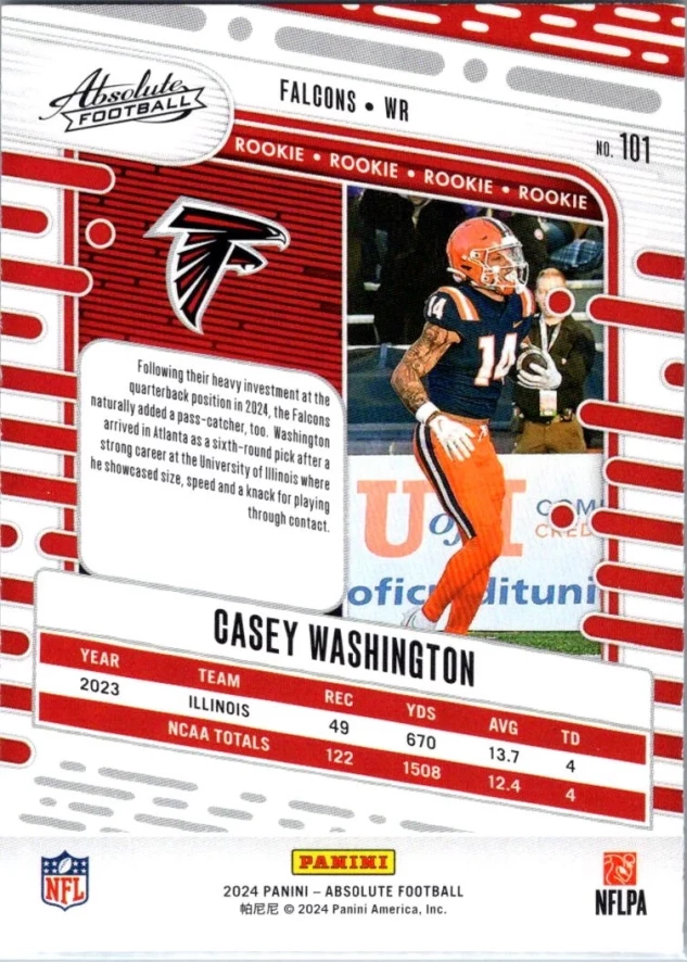 This is a nice example of a 2024 Panini Absolute #101 Casey Washington Retail
