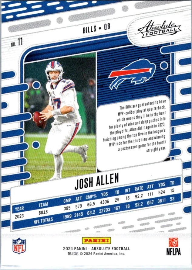 This is a nice example of a 2024 Panini Absolute #11 Josh Allen Retail