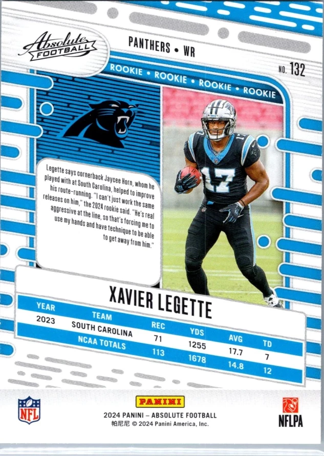 This is a nice example of a 2024 Panini Absolute #132 Xavier Legette Retail