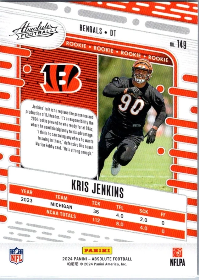 This is a nice example of a 2024 Panini Absolute #149 Kris Jenkins Retail