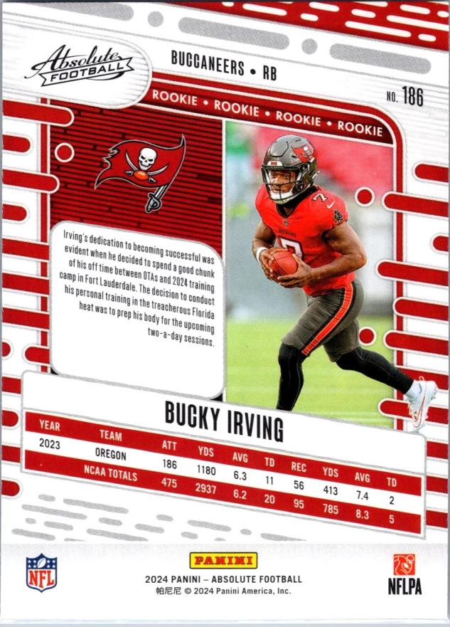 This is a nice example of a 2024 Panini Absolute #186 Bucky Irving Retail