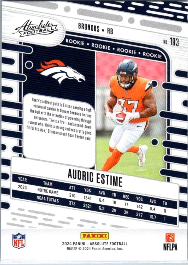 This is a nice example of a 2024 Panini Absolute #193 Audric Estime Retail