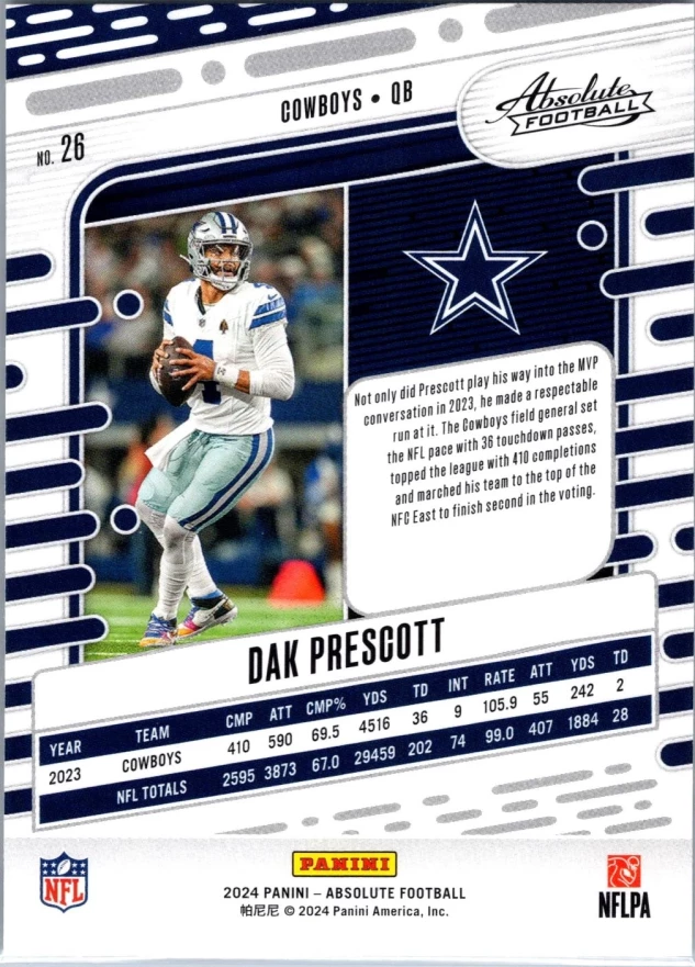 This is a nice example of a 2024 Panini Absolute #26 Dak Prescott Retail