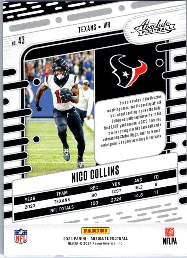 This is a nice example of a 2024 Panini Absolute #43 Nico Collins Retail
