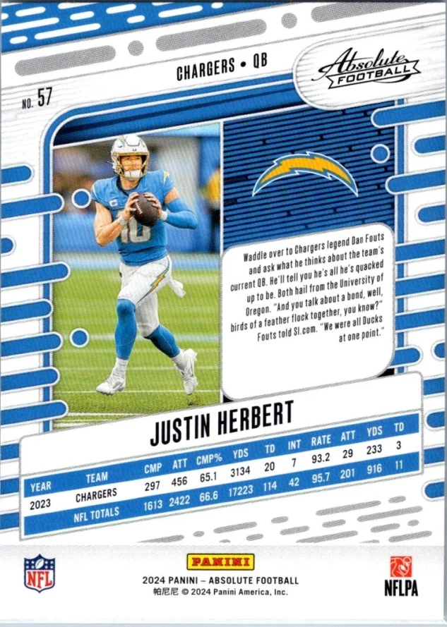 This is a nice example of a 2024 Panini Absolute #57 Justin Herbert Retail