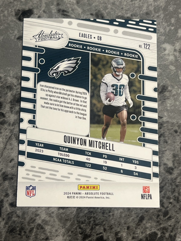 2024 Panini Absolute Football Quinyon Mitchell RC Blue Parallel