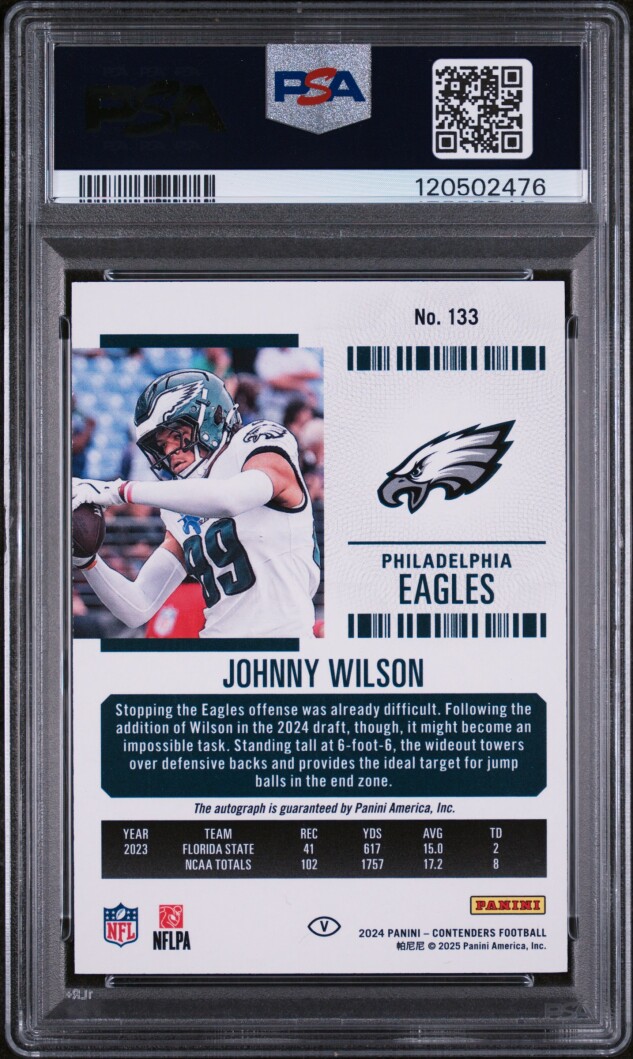 You are purchasing a 2024 Panini Contenders Johnny Wilson #133 Variation Auto RC 95/99 PSA 9. Thank you for looking.