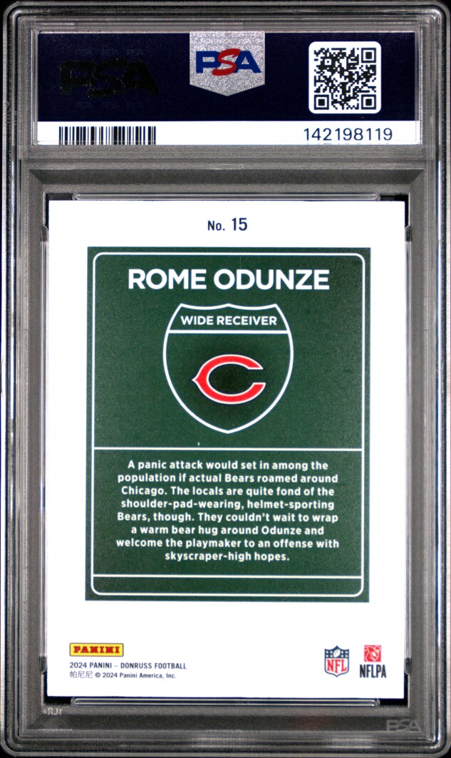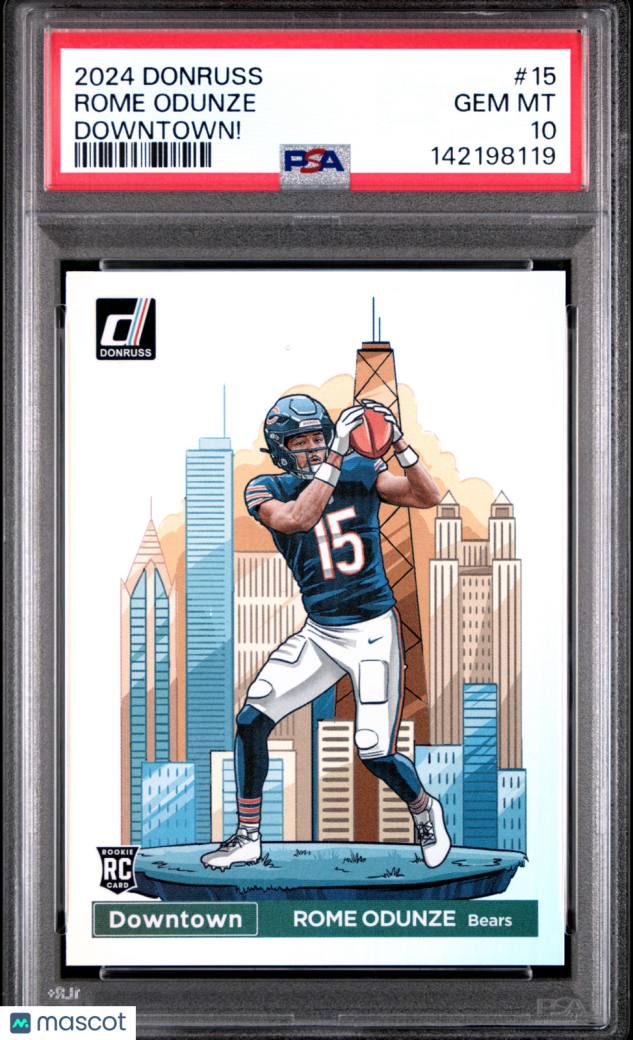 You are purchasing a 2024 Panini Donruss Downtown! Rome Odunze #15 PSA 10. You will receive the exact item in the photographs. Thank you for looking.