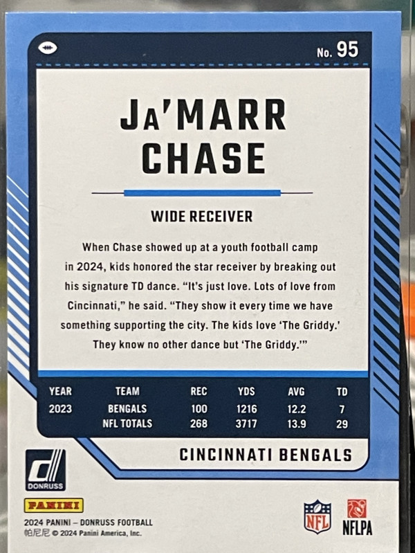 2024 Panini Donruss Ja'Marr Chase #95 Red And Green Press Proof