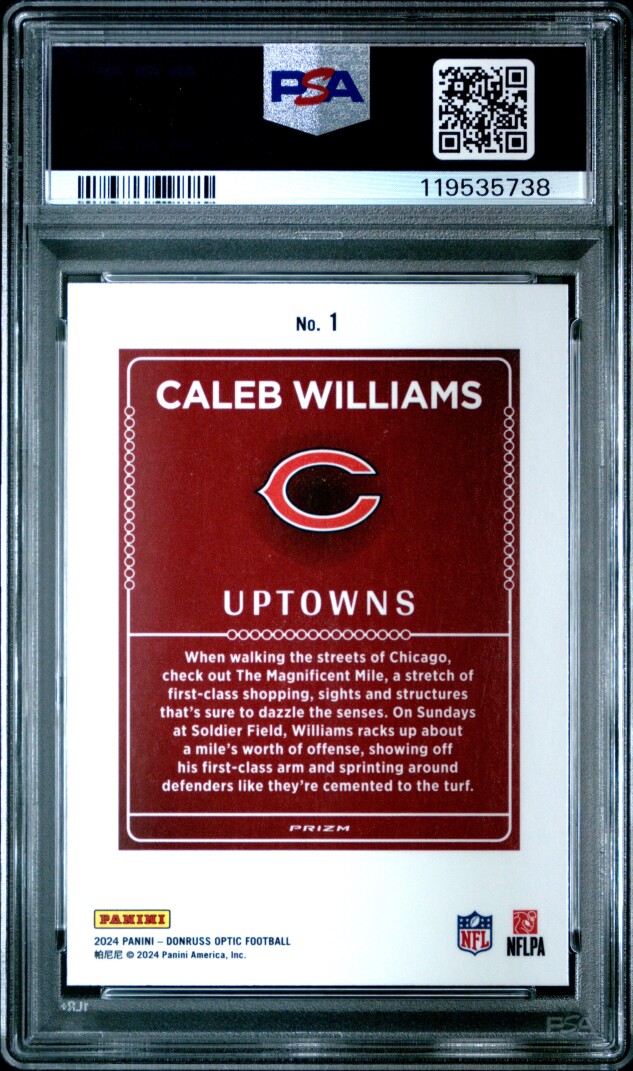 You are purchasing a 2024 Panini Donruss Optic Uptowns Caleb Williams PSA 10. You will receive the exact item in the photographs. Thank you for looking.