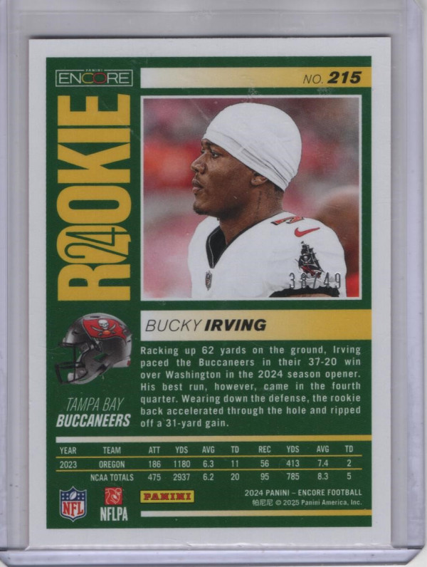 2024 Panini Encore Rookies Red /49 Bucky Irving RC