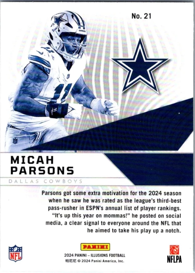 This is a nice example of a 2024 Panini Illusions #21 Micah Parsons Amazing