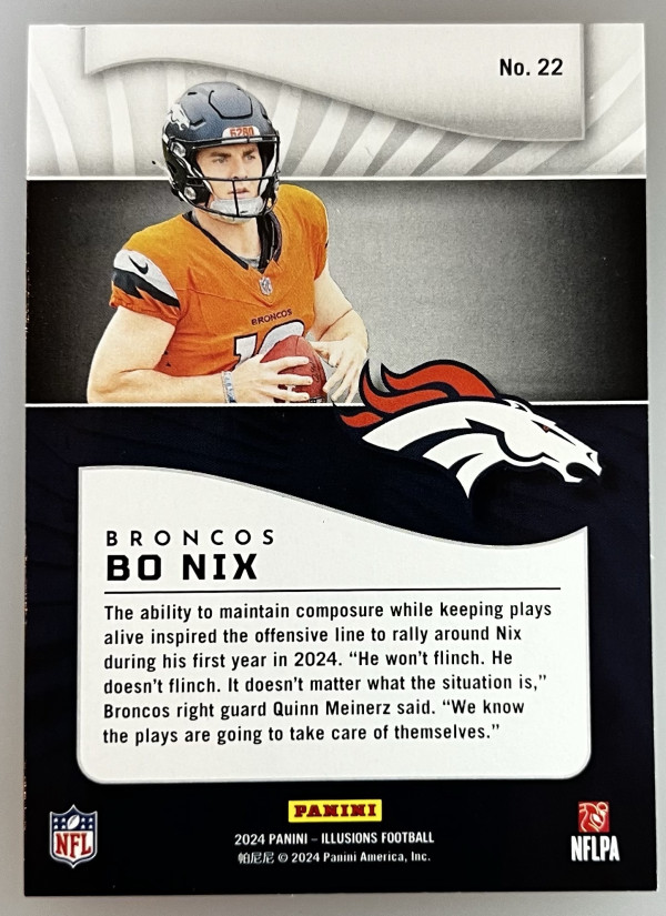 2024 Panini Illusions - Bo Nix #22 Trophy Collection Emerald (RC). Near mint to mint condition.