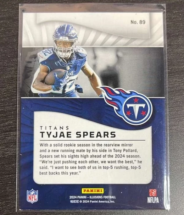 This is a nice example of a 2024 Panini Illusions - Orange Trophy Collection #89 Tyjae Spears
