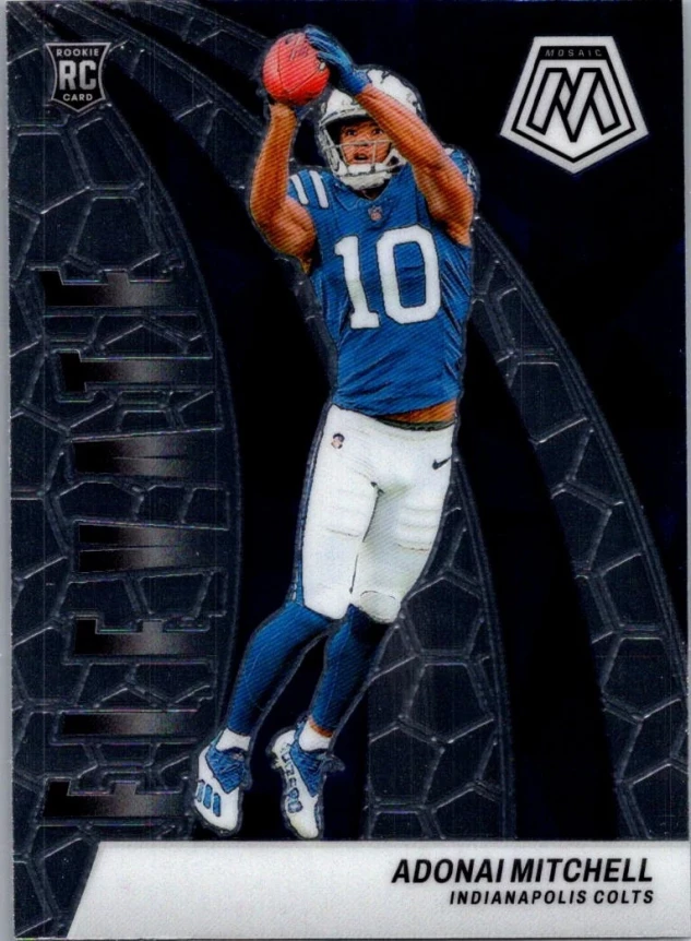 This is a nice example of a 2024 Panini Mosaic #6 Adonai Mitchell Elevate