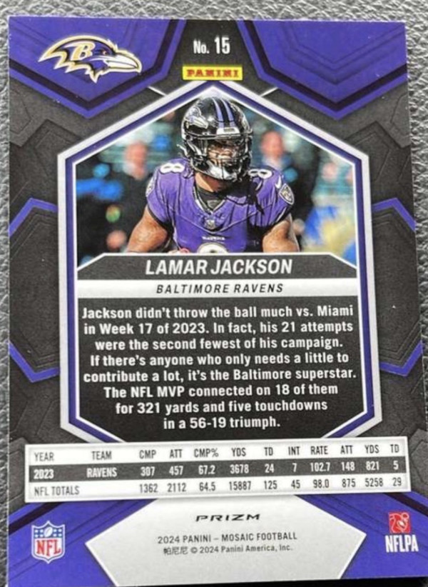 2024 Panini Mosaic - Mosaic Green #15 Lamar Jackson, Baltimore Ravens