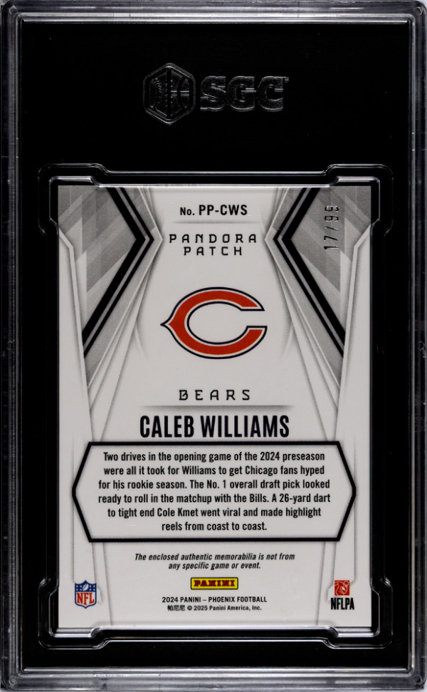 You are purchasing a 2024 Panini Phoenix Caleb Williams #PP-CWS Pandora Patch Red SGC 9. You will receive the exact item in the photographs. Thank you for looking.