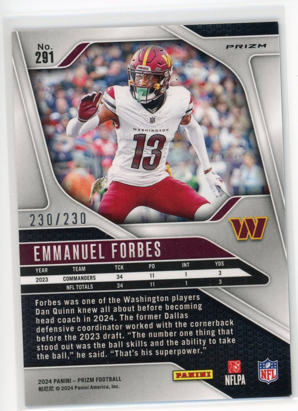 2024 Panini Prizm #291 Emmanuel Forbes Blue Wave 230/230