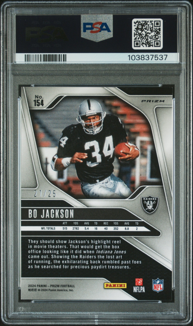 2024 PANINI PRIZM BLUE SHIMMER #154 BO JACKSON (21/25) PSA 9 - POP 2