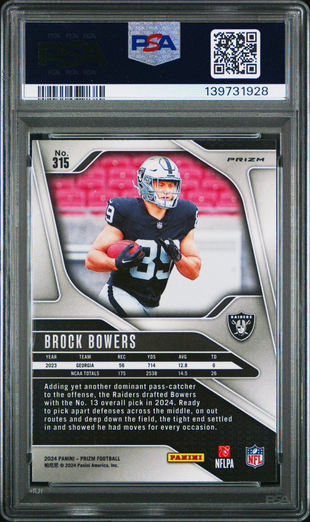 2024 Panini Prizm Brock Bowers Red Sparkle PSA 9