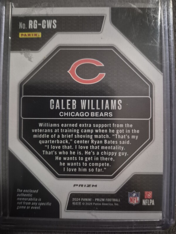 2024 Panini Prizm Caleb Williams Premier Neon Green Pulsar Rookie Jersey Patch