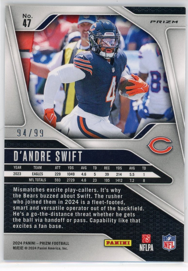 2024 Panini Prizm D'Andre Swift No Huddle Blue 56/99