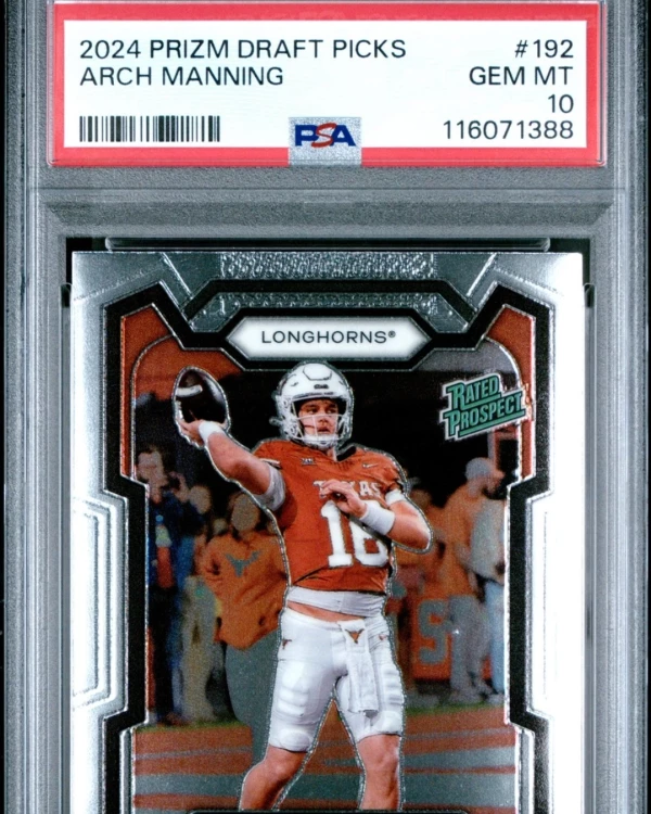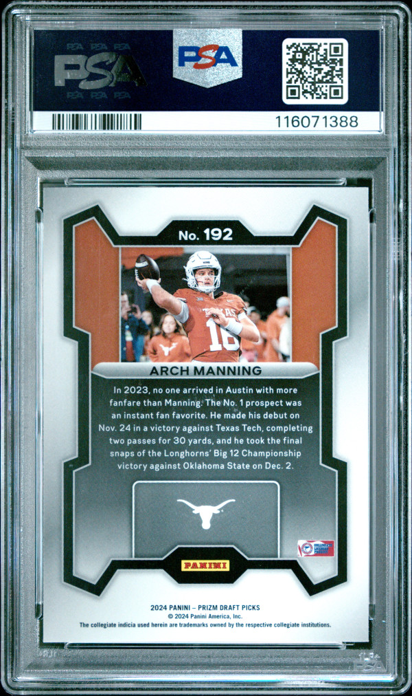 You are purchasing a 2024 Panini Prizm Draft Picks Arch Manning #192 Low Pop Rookie PSA 10. You will receive the exact item in the photographs.