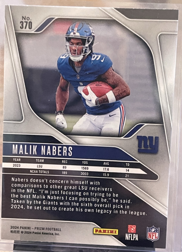 2024 Panini Prizm Rookies Malik Nabers #370 Silver Prizm (RC)