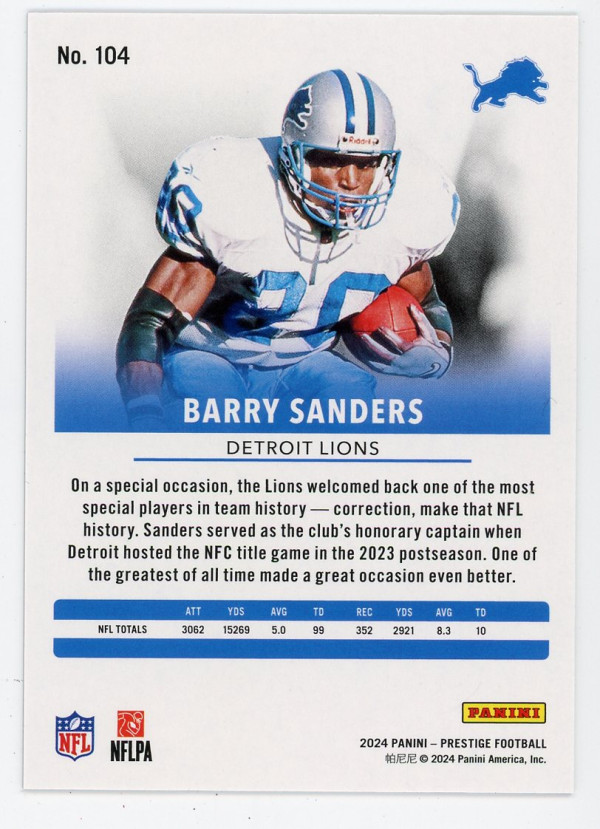 2024 Prestige #104 Barry Sanders Xtra Points Premium Red 234/399