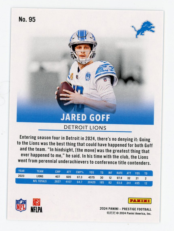 2024 Prestige #95 Jared Goff Xtra Points Green 235/299