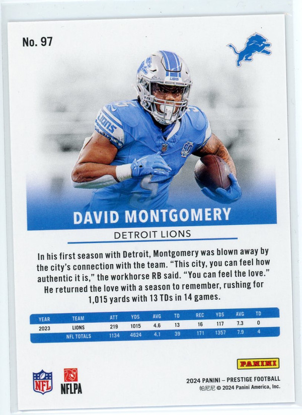2024 Prestige #97 David Montgomery Xtra Points Red /999