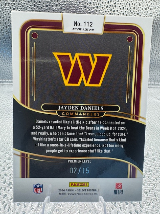 You are purchasing a 2024 Jayden Daniels Pink Glitter 2/15 Rookie #112. You will receive the exact item in the photographs. Thank you for looking.