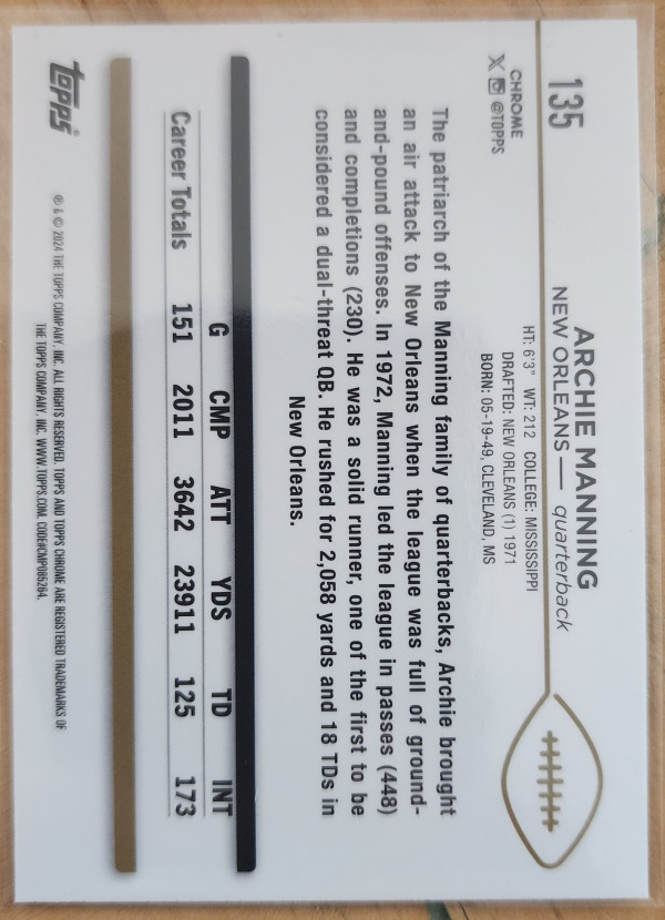 2024 Topps Chrome Archie Manning 28/250