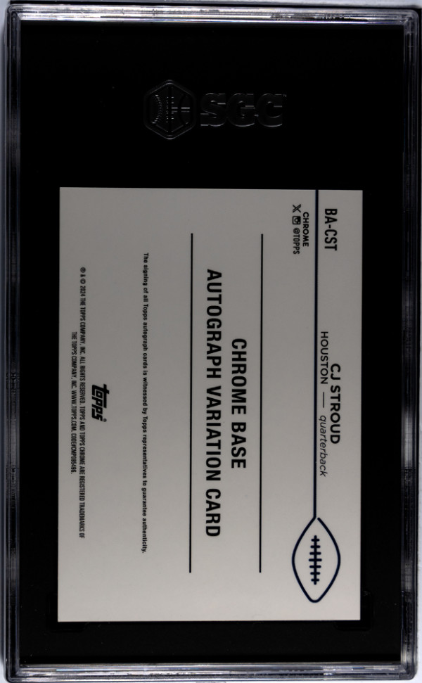 You are purchasing a 2024 Topps Chrome CJ Stroud #BA-CST Autograph Gold Wave Refractor SGC 9 Auto 10. You will receive the exact item in the photographs. Thank you for looking.