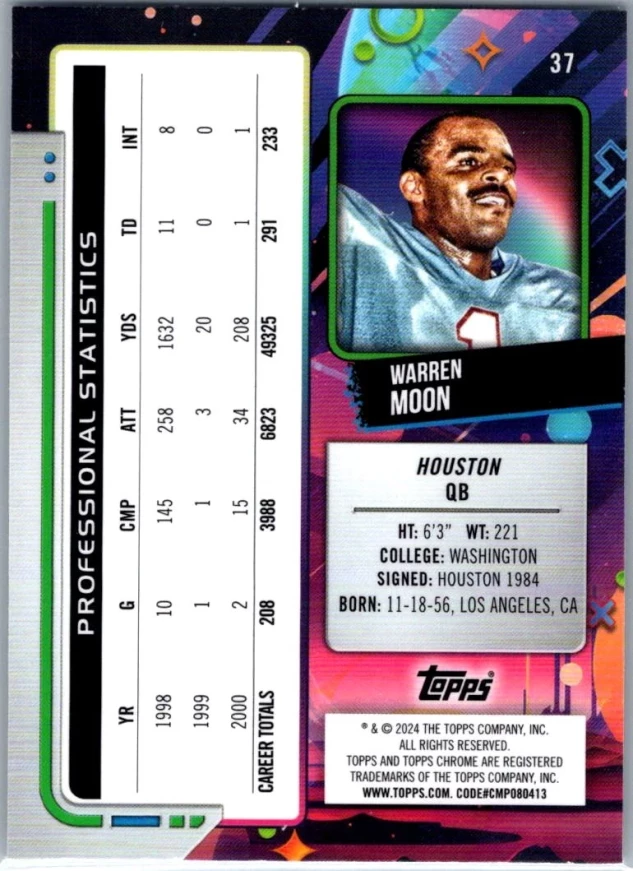 This is a nice example of a 2024 Topps Chrome Cosmic #37 Warren Moon