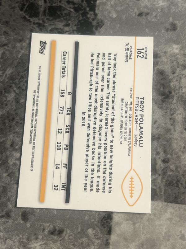 2024 Topps Chrome Football Troy Polamalu Silver Refractor HOF Steelers